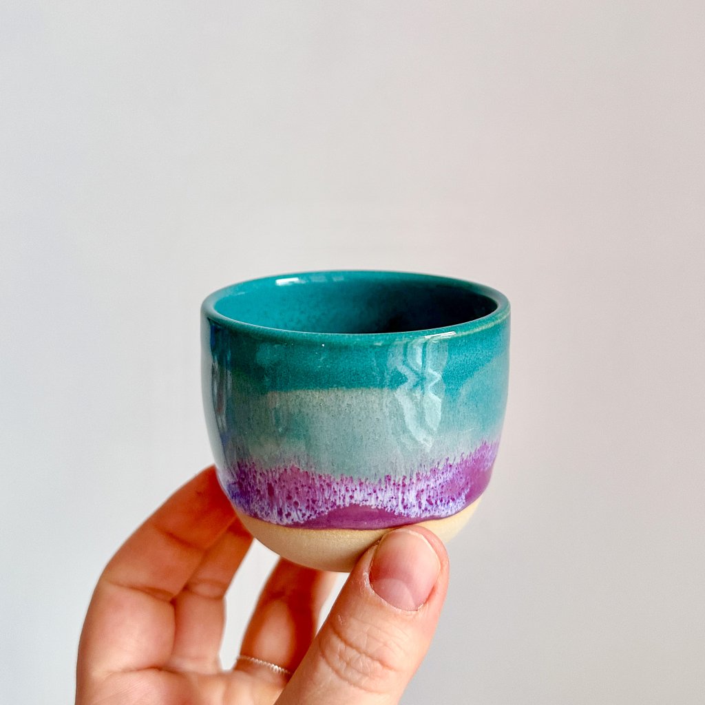 Ahoj, já jsem fialovotyrkysový kalíšek na kávu.