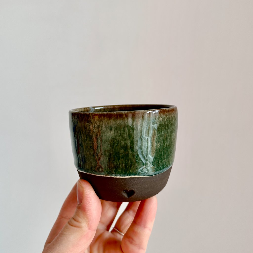 Ahoj, já jsem lesní hrnek z hladké hnědé kameniny.