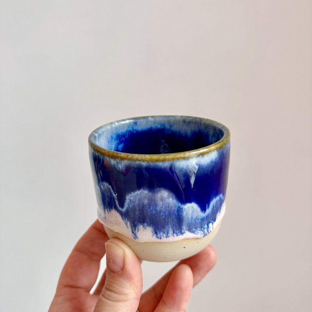 Ahoj, já jsem tmavěmodrý hrnek s jemým růžovobílým nádechem.
