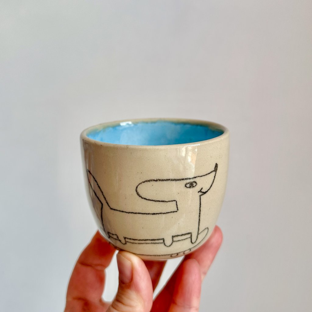 Ahoj, já jsem ručně malovaný hrnek pro všechny milovníky pejsků, uvnitř najdeš světle modrou glazuru.