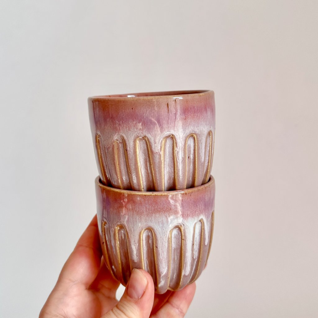 Ahoj, já jsem fialkový hrnek na kávu se světlými tóny.