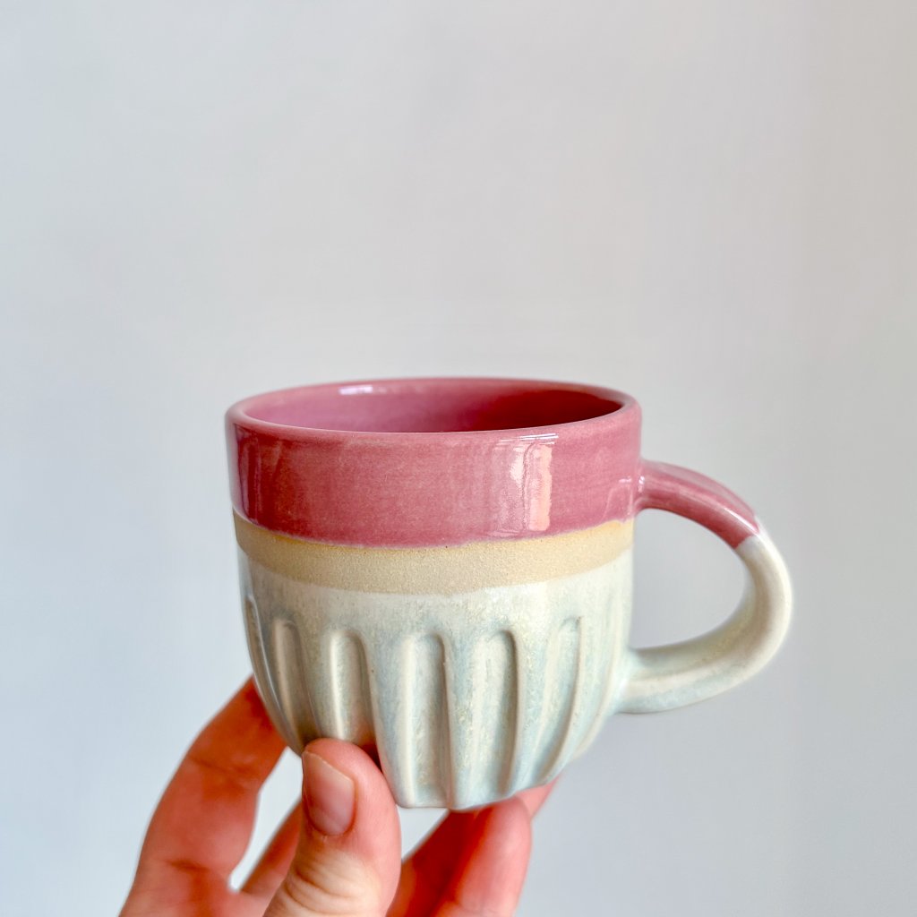 Ahoj, já jsem růžovo zlatý hrnek na čaj s jemným prořezáváním.